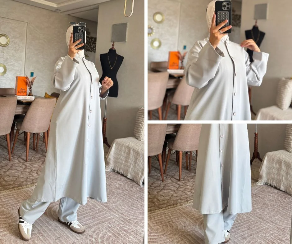 طقم نسائي أنيق بثوب أورلاندو العصري، يجمع بين الرقي والراحة في تصميم محتشم يناسب مختلف الأذواق.